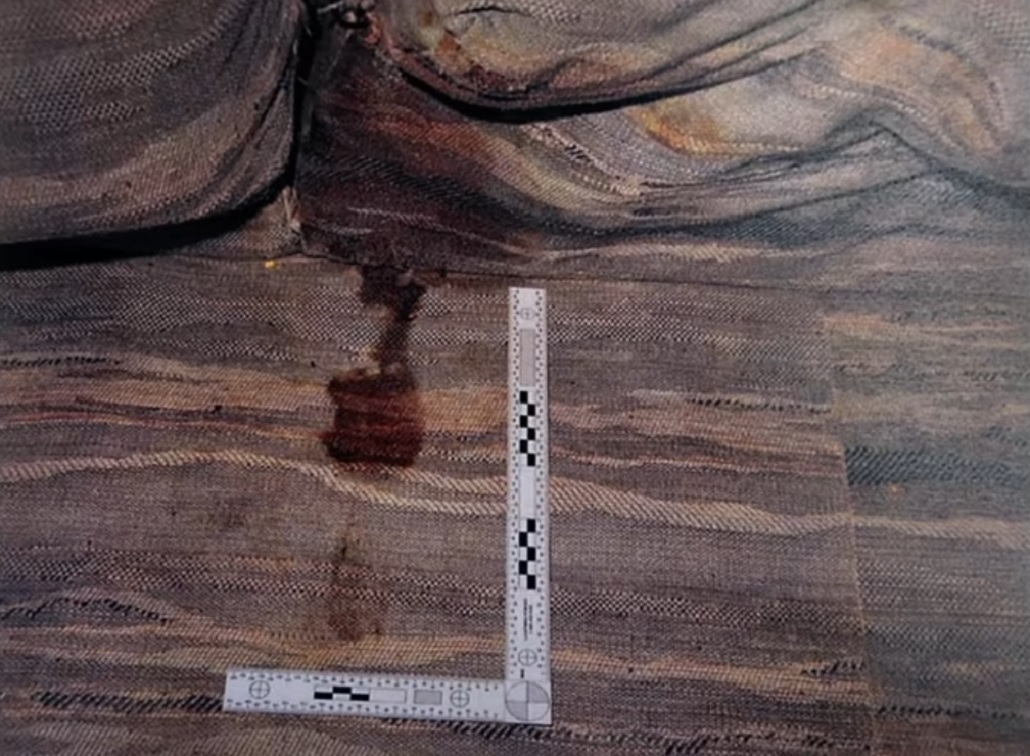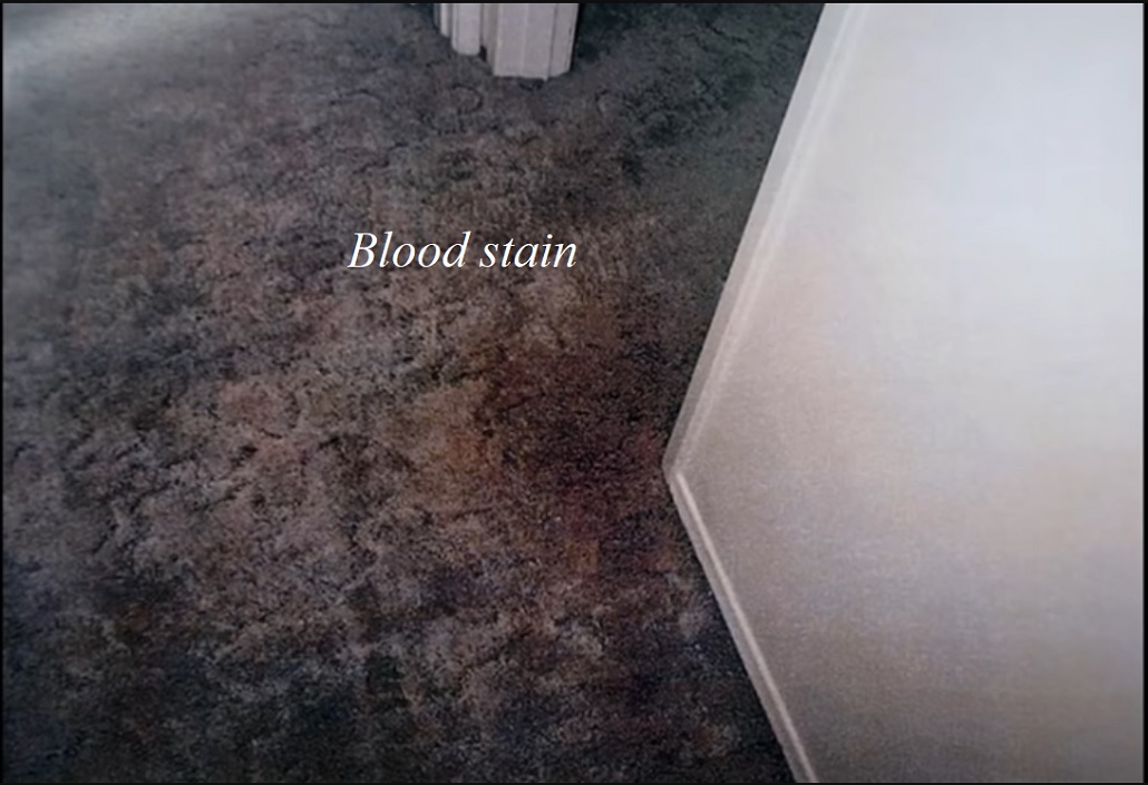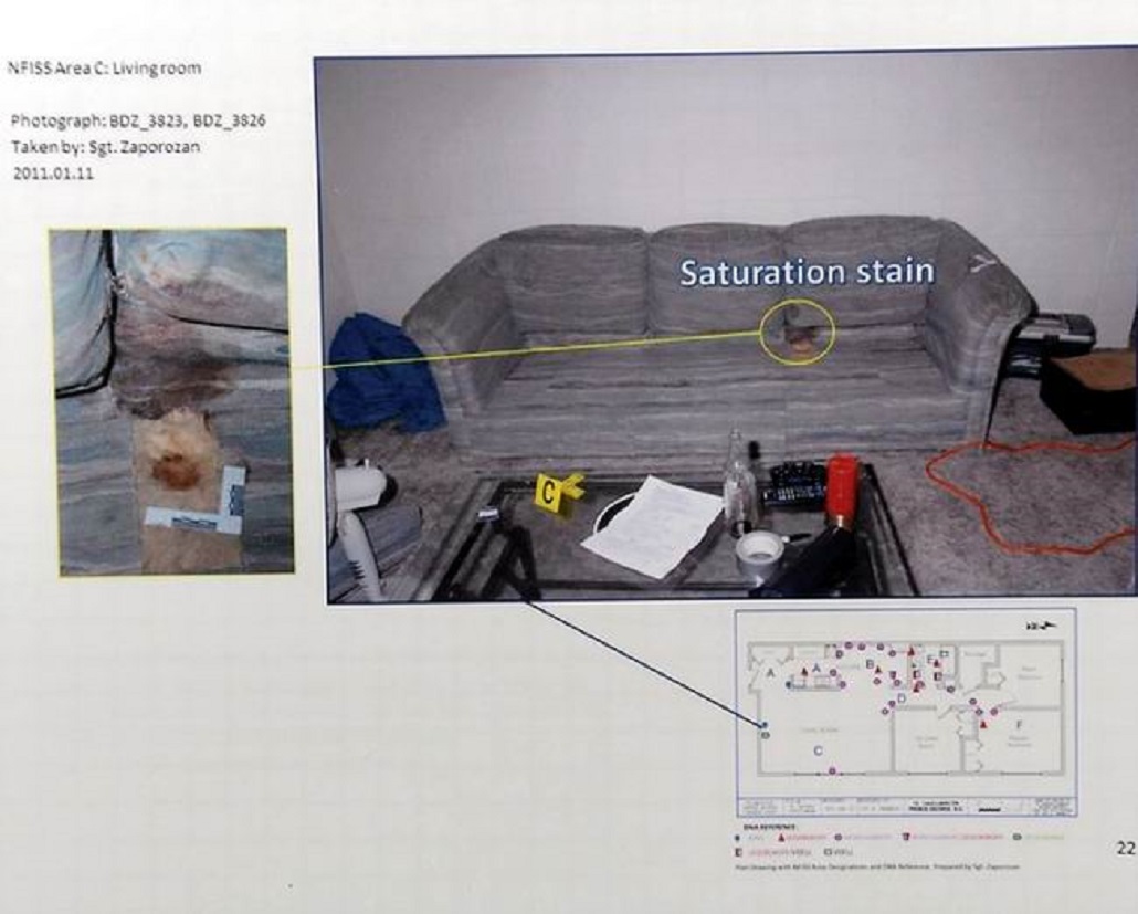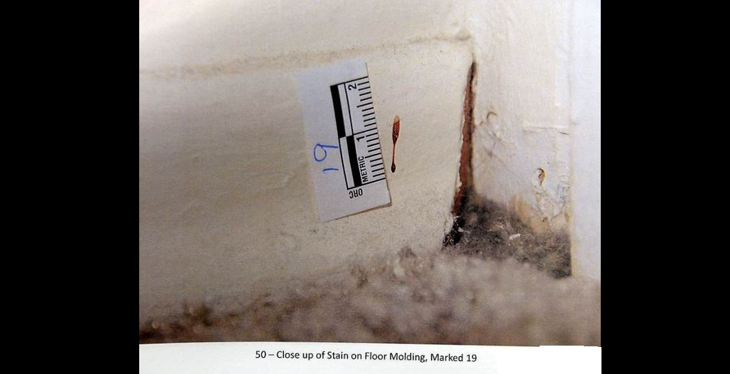 and various places in his apartment,they blue- lighted it and there were swabs everywhere, and it looked like he basically started chasing her from his bedroom into the kitchen and beat her to death.