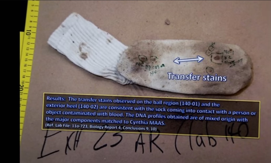 One of Legebokoff’s socks is found to cotain DNA matching Cynthia’s.