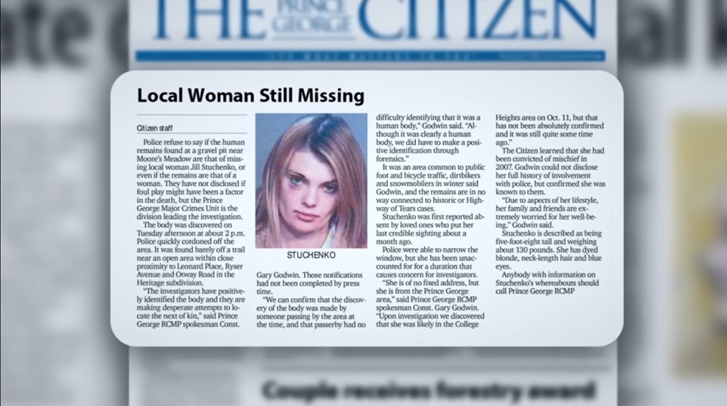 Stuchenko was found half buried in a garvel pit just outside Prince George.