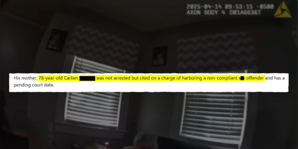 And although his mother was not arrested, she has been cited for harboring a non- compliant sex offender and has a pending court date.