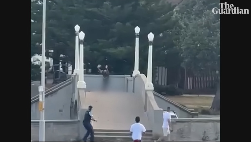 At this point, shots appear to be fired back by police officers.by Guardian News, from  available footage , there have been 61 gunshots.