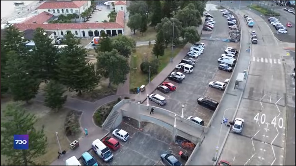 At about the same time,the alleged gunman Naveed Akram  and his father emerge  from their silver hatchback parked on Campbell Parade.