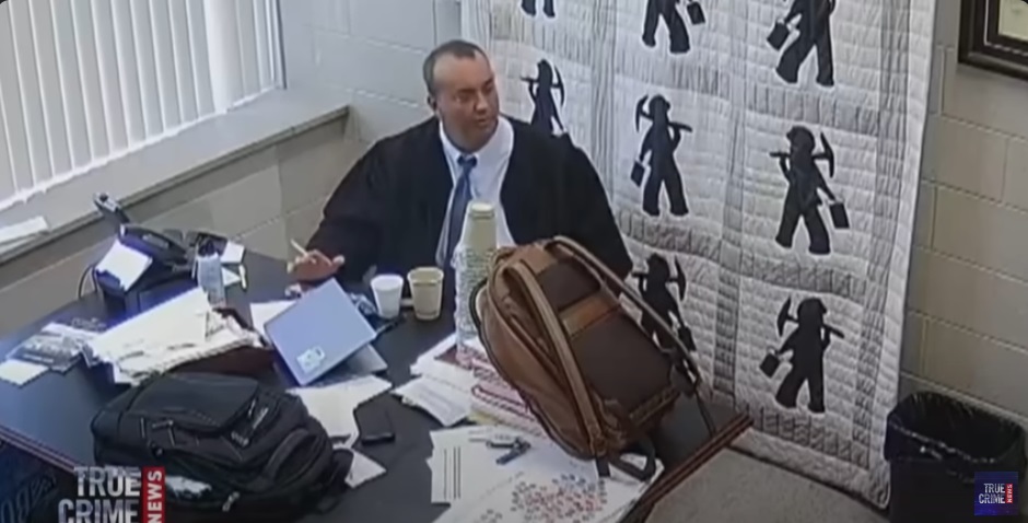 when suddenly a moment no one saw coming caught on surveillance camera in the judge’s chambers with the judge casually smoking a ciggarette
