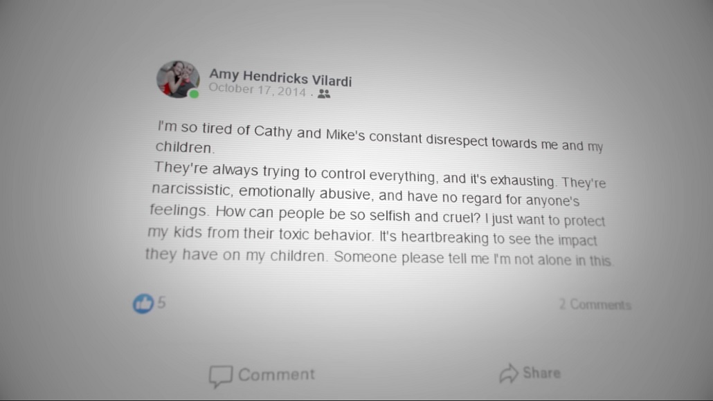 Amy’s facebook page howed that she constantly had fights with Cathy and Mike over her children often calling them narcissistic emotional abusive and and disrespectful.