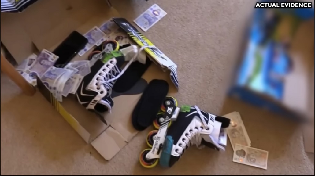 As they opened the rollerblades box , numerous ten and twenty-pound notes were found inside.
