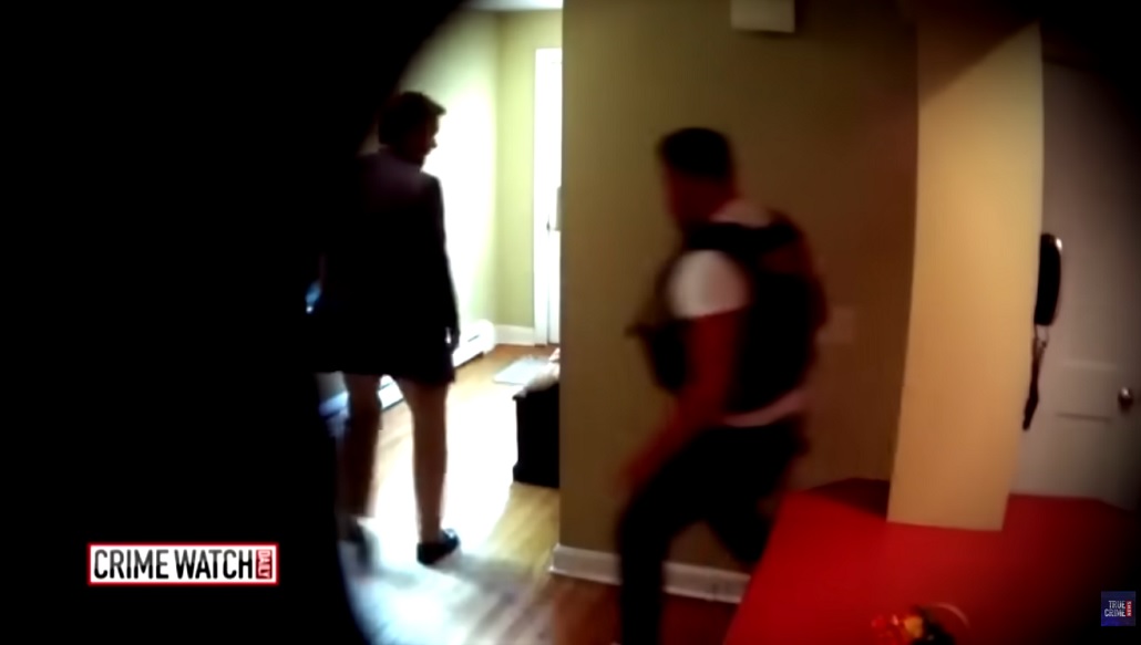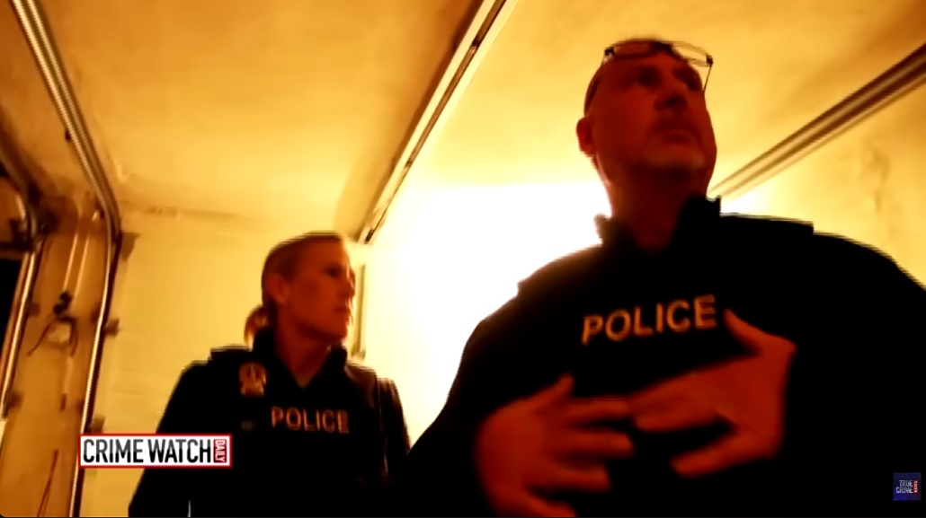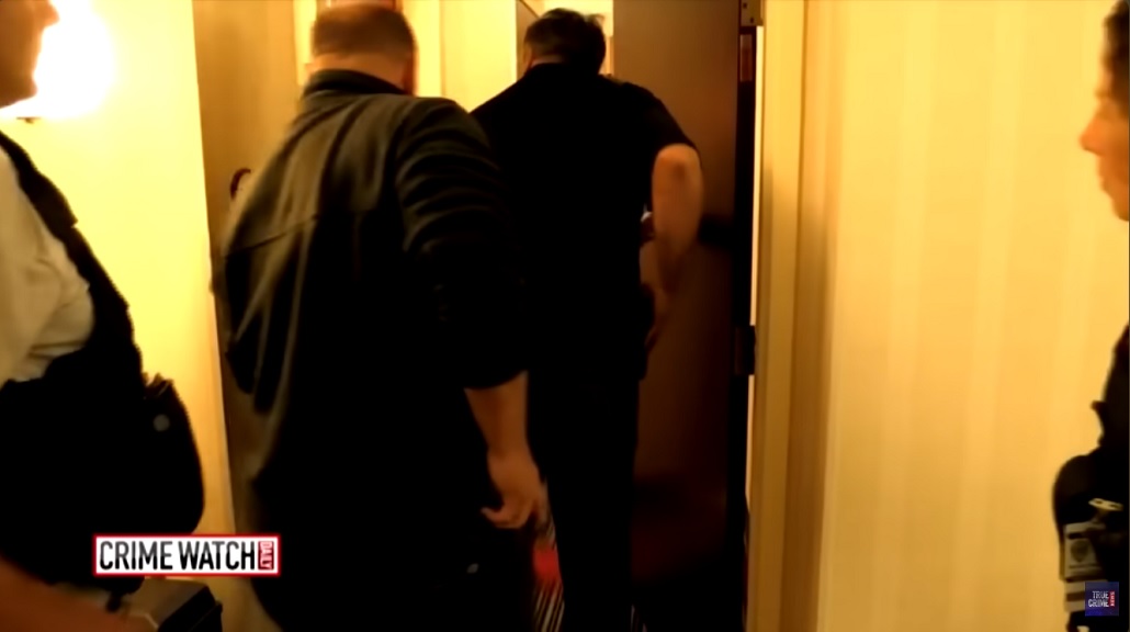 As he’s put behind bars the cops have their warrant to search the room.six detectives carefully entered.