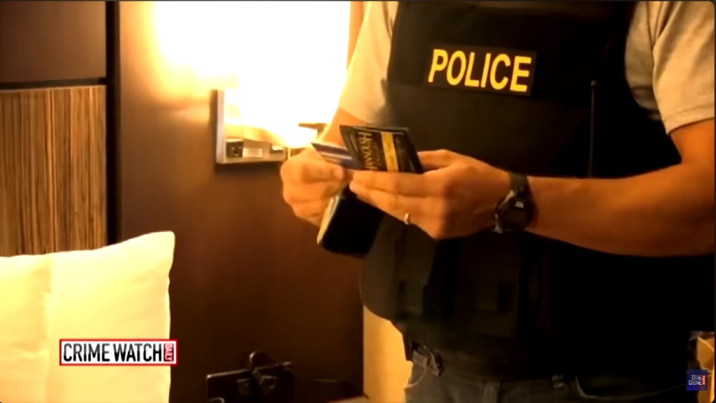 There the officers search him a second time, they find a key card for a local hotel.