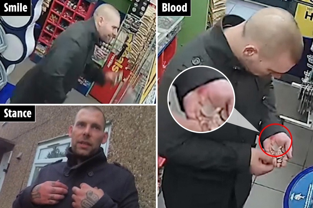 called his mother while stopping at a convenience store,and was caught on CCTV buying cigarettes. blood still visible on his hand.