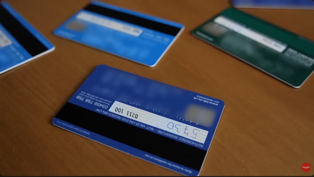 There was significant quantity of  bank cards that are in other people’s names and if you turns those over you’ll find that almost all of them have the pin written on the back of them.
