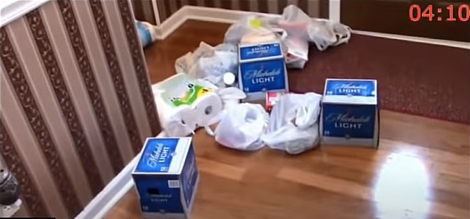 the police notice the shopping bags dropped in the foyer,containing several perishable items and the doors lock of the back door removed.