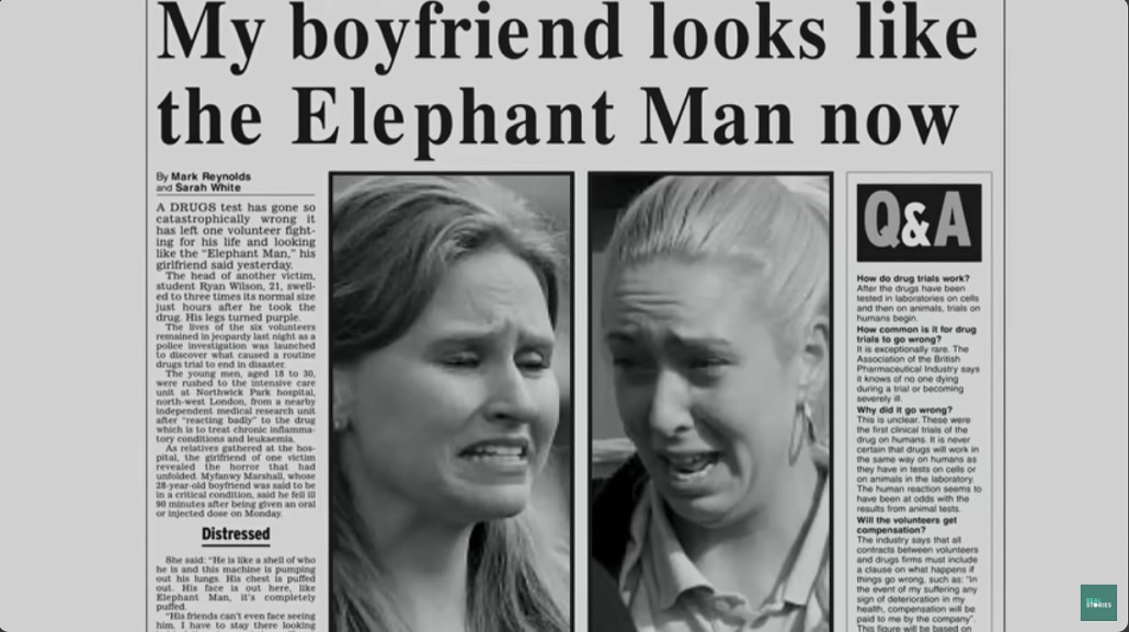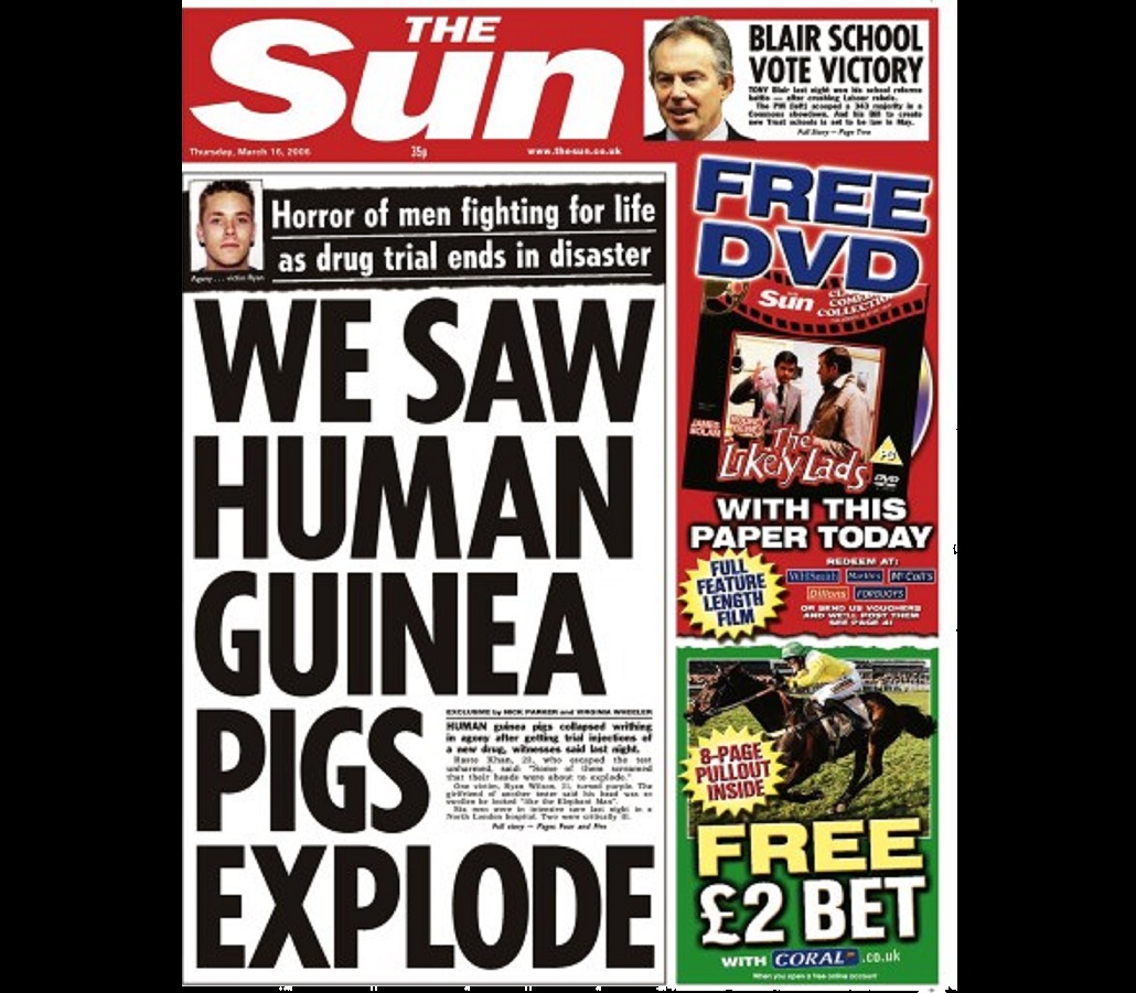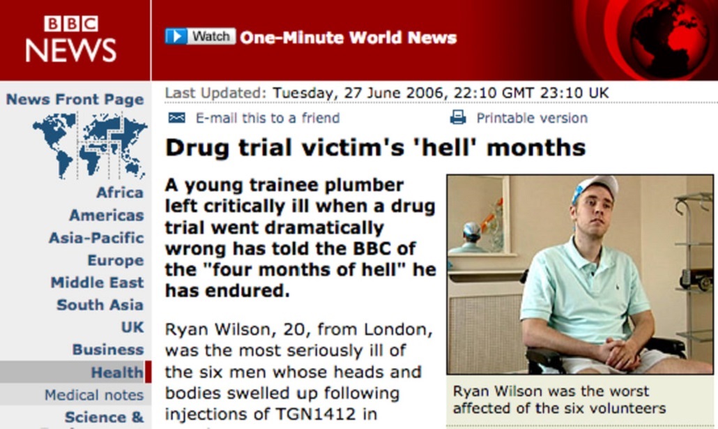 On Monday 13 March 2006, eight healthy young men took part in a clinical trial of an experimental drug known as TGN1412. The drug was intended to treat leukaemia and had already been successfully tested on monkeys but never on humans.