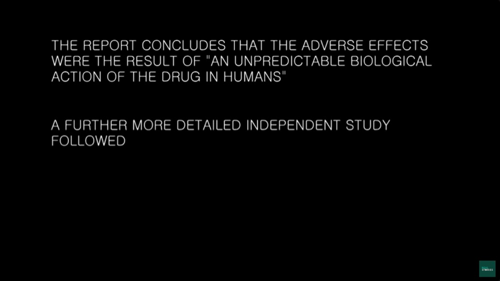 The first round of tests that were carried out of identity and purity tests were able to show very quickly  using the simple chemical test that this was the right drug,it was the right strength and it wasn’t contaminated with anything else that would have caused this reaction,the next  step was to undestand why tyhose preclinical safety tests hadn’t worked.