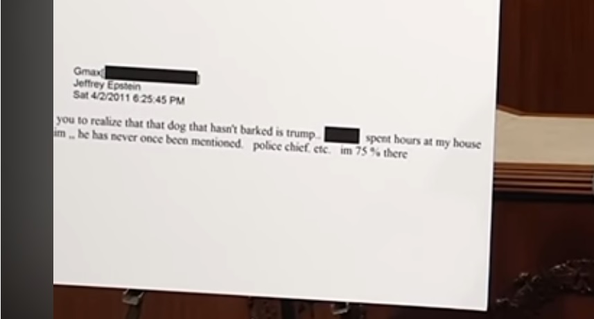 ” I want you to realize that  the dog that hasn’t barked is Trump, redacted victim spent hours at my house with him , he has never onece been mentioned.”