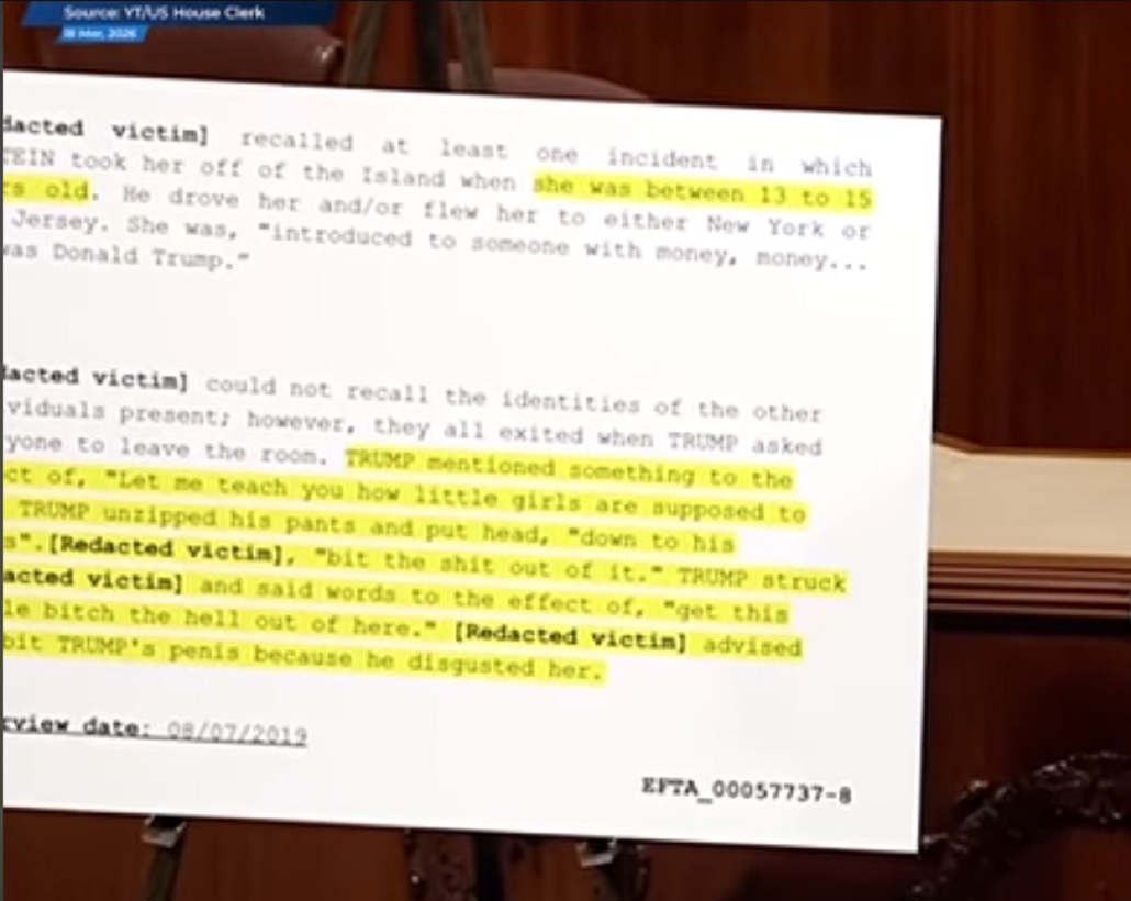 In the 3 million or so documents that the DOJ has disclosed to Congress under the Epstein files transparency act, there is credible evidence that Donald Trump committed a crime, and that , of course, exludes the nearly 3 million pages that the DOJ is refusing to turn over.