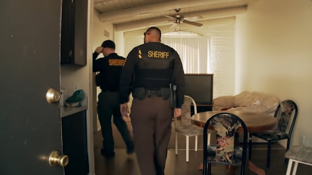 The hands-off approach works, with no weapons drawn and no search warrant the man gives consent for the police to enter his house, once inside the property the deputies are immediately suspicious,it’s not clear who the owner is or how many people live there.